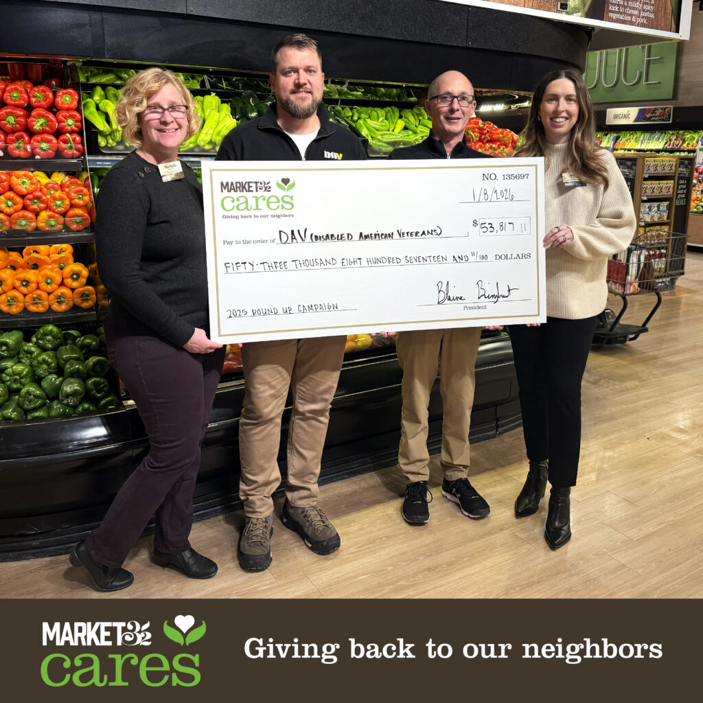 “At Market 32 and Price Chopper, our mission is to help people feed and care for their families, and our broader purpose is to support the well-being of the communities we serve,” said Blaine Bringhurst, the company’s president. “DAV’s commitment to helping veterans live healthy, dignified, and secure lives aligns with that purpose. We’re proud to stand with our customers in supporting an organization that offers life-changing assistance to those who have served our country.”