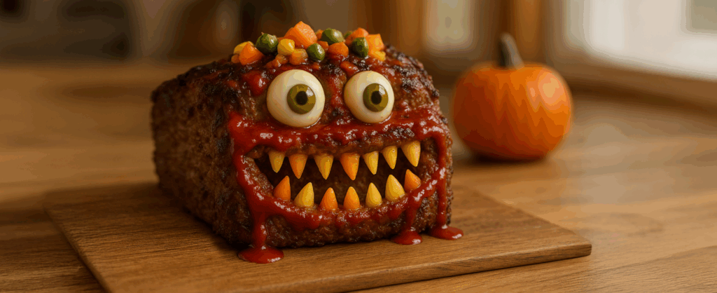 Spread barbecue sauce over the top of the meatloaf (or ketchup for an especially gruesome appearance!).