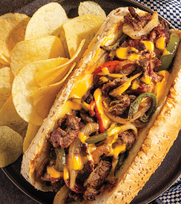 These Philly Cheesesteak Sandwiches use thinly sliced New York strip or ribeye steak cooked on a flat-top grill with onions and bell peppers until everything is tender and browned. Provolone cheese is melted over the meat-veg mix, all piled into hoagie rolls, and served with a side of warmed cheese dip for extra indulgence.