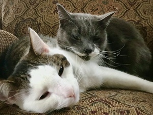 Elwood(9) is our proud first born son with a mustache of Sam Elliot proportions, rescued in 2019. His feral little brother came to us via the Cat Distribution System 4 years later, discovered loose on a farm. They go by many aliases; The Prince Kittans, The Skunky Runkies, Clemons, Smelly Elly the Belly, Fish & Gravy, and innumerable others. They are the laziest lumps of fur in all of Saratoga County and enjoy; eating garbage, greco-roman wrestling, and not paying rent.