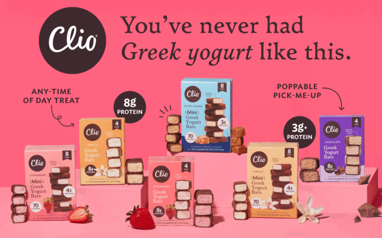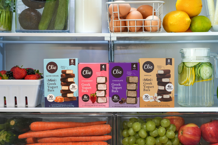 We’re raising the Greek yogurt bar. Introducing Clio Refrigerated Greek Yogurt Bars. Think creamy Greek yogurt wrapped in an irresistible chocolatey coating, combining the nutritional benefits of Greek yogurt – like protein and probiotics – with a delicious cheesecake-like texture. Clio Greek Yogurt Bars are perfect for a grab-and-go breakfast, a satisfying protein snack, or an indulgent yet nourishing treat. Creamy, crave-worthy and chillin’ in the yogurt aisle in 4 delicious flavors: Strawberry, Vanilla, Chocolate and Salted Caramel.