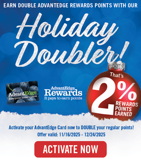 Use your AdvantEdge Card in-store or online to earn points when you buy groceries